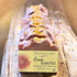 You will fall in love with this large bar It smells wonderfully of wild roses and is colored with Rhubarb root for a deep pink. Creamy goat milk lather & gold mica dusted Himalayan salt on top makes it special with a mild exfoliation. Notes of orange peel, pink rose, geranium, mimosa, lily of the valley, vanilla, and musk. Shower with some love!